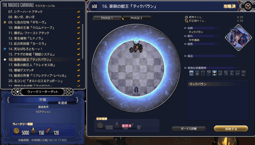 中級はNo.16 剛腕の獣王「ティクバラン」。