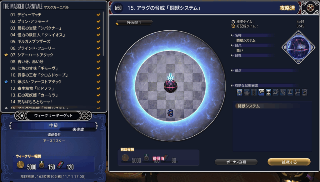 中級はNo.15 アラグの脅威「闘獣システム」。